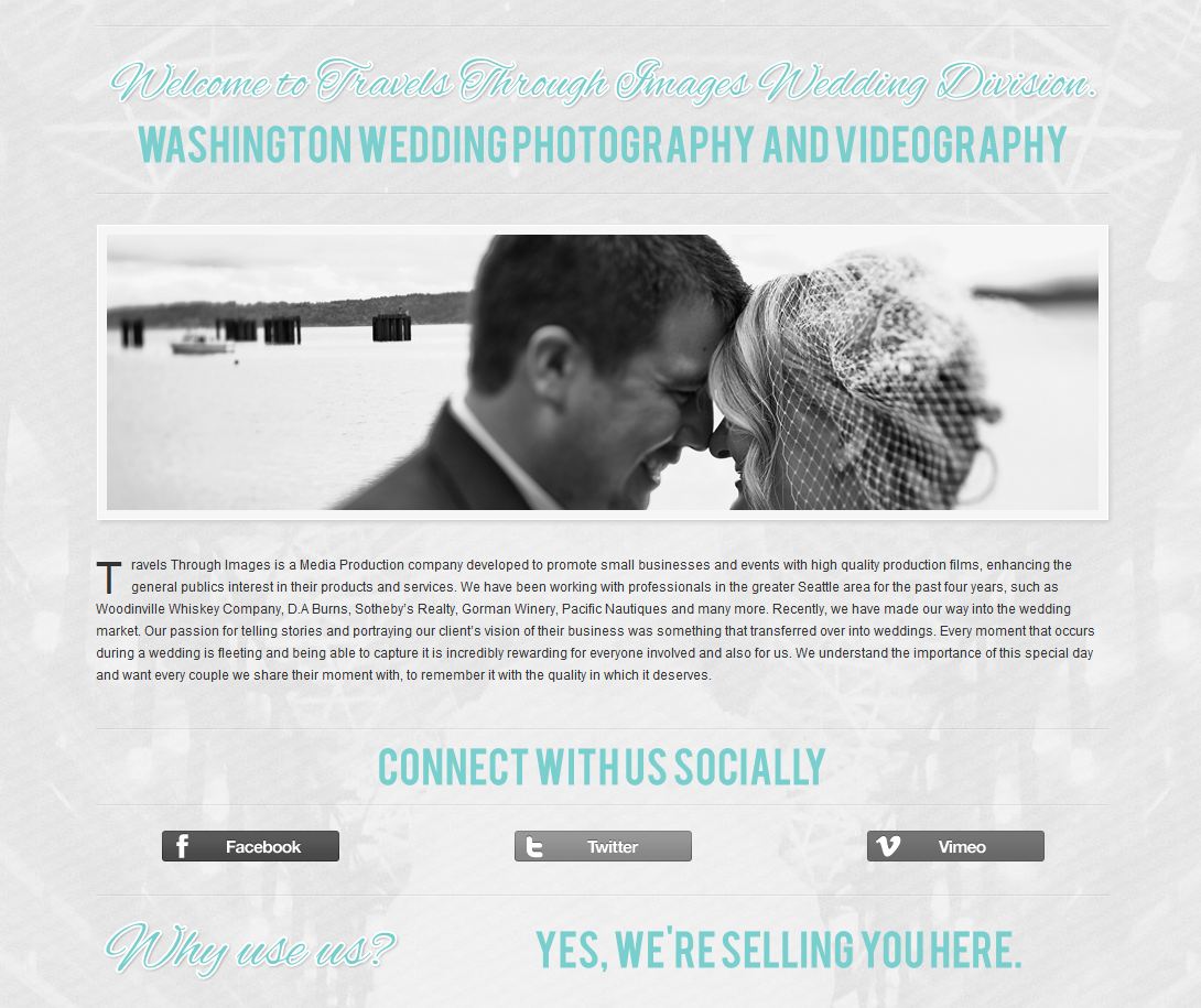 August 3, 2012Here at Apex we just had the pleasure of working with Chris King, owner of Travels Through Images Photography out of Bellevue, WA. Chris was interested in expanding his photography business and branching off in to offering exclusive wedding films to allow individuals to capture their most precious moment through the eye of a recording lens. He contacted us in regards to a new wedding website design, and to help establish a presence in the Washington wedding market place.
